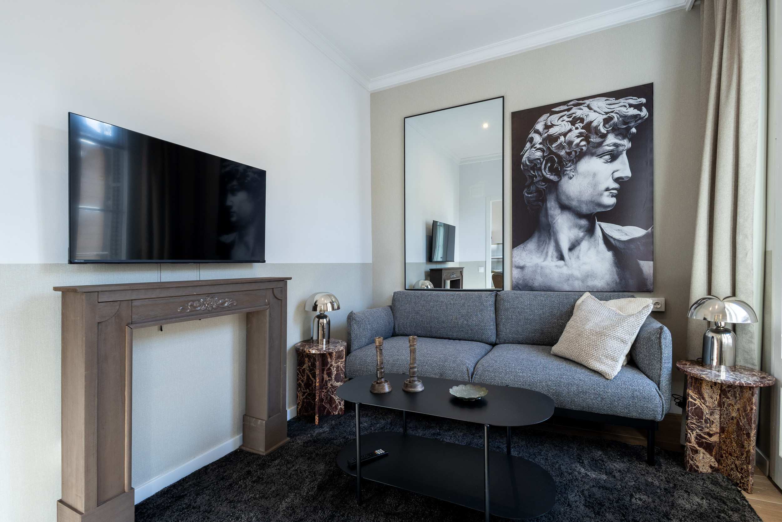 Apartamento boutique recientemente renovado con 2 habitaciones dobles y 1 baño completo. Limpieza diaria de 30 minutos incluida de lunes a sábado. El apartamento tiene capacidad para 3 personas con 2 camas individuales y una cama doble.
